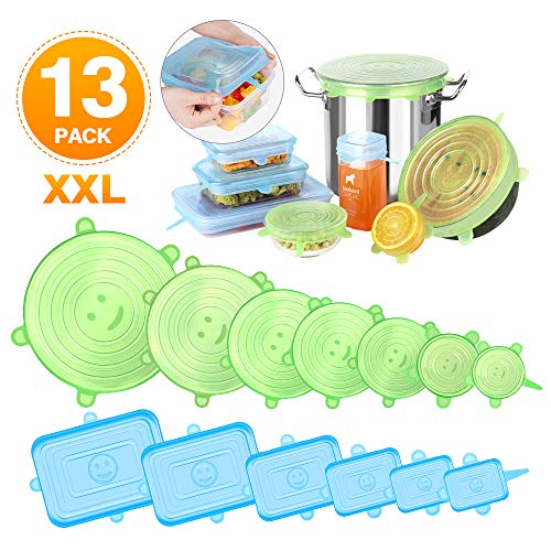 Newdora Tapas de Silicona Elásticas Reutilizables, 13 Piezas (7 Redondas y 6 Cuadradas) Tapas Silicona Ajustables Cocina, para Lavavajillas, Microondas, Horno o Refrigerador, Sin BPA
