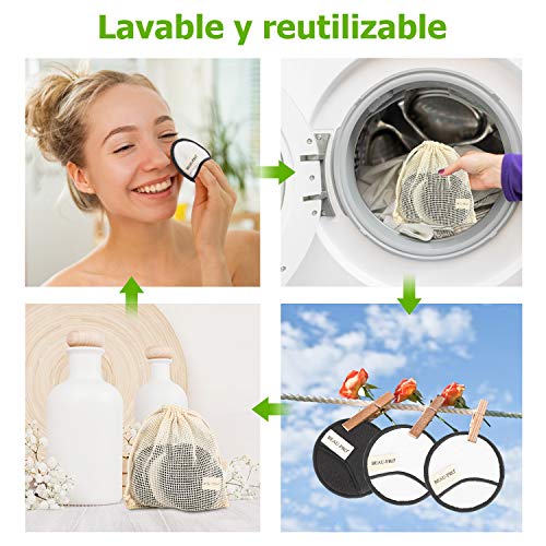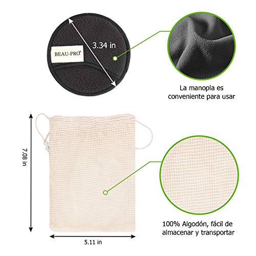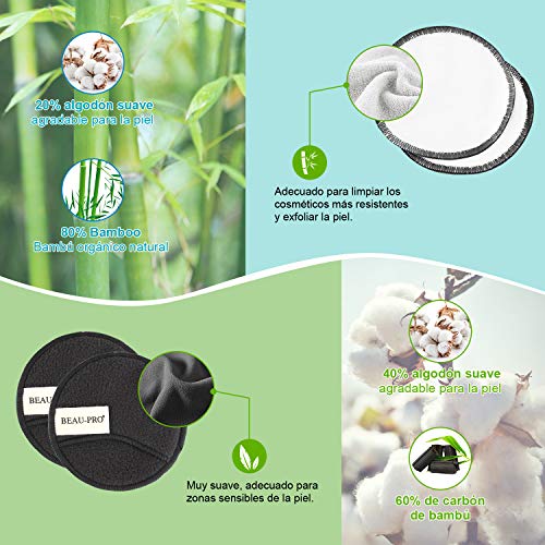 - ✅Dos Tipos de Material para Todos Los Piel: algodones desmaquillantes reutilizables BEAU-PRO 10 piezas contiene 5 discos algodon carbón de bambú negro suave con absorber sustancias nocivas en la piel, lo que es bueno para la piel sensible. Y 5 discos algodon fibra de bambú blanca con efecto peeling son perfectas para limpiar la piel al eliminar los piel áspera y exfoliar suavemente la piel. Estas toallitas de limpieza satisfacen sus necesidades individuales al tiempo que reducen el desperdicio.