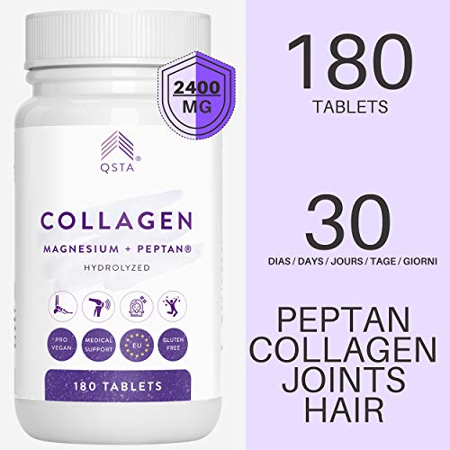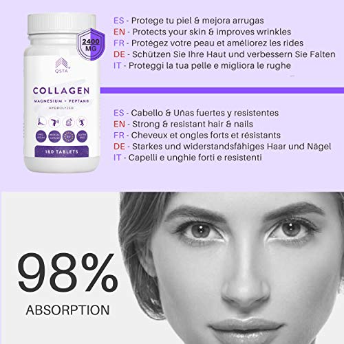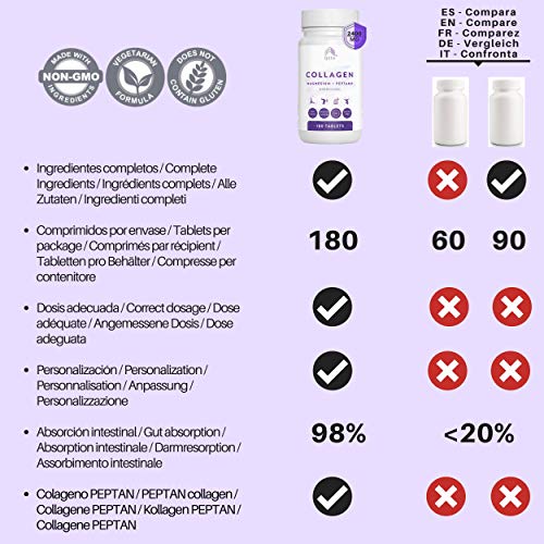 Colageno con Magnesio 4-EN-1 (60 DIAS), Acido Hialuronico, Vitamina C, Vitamina D3 180 Comprimidos, Hidrolizado PEPTAN, Articulaciones, Huesos, Piel, Cabello y Previene Lesiones +2400MG +MEDICOS