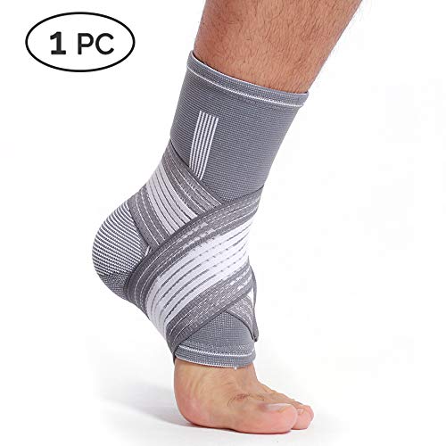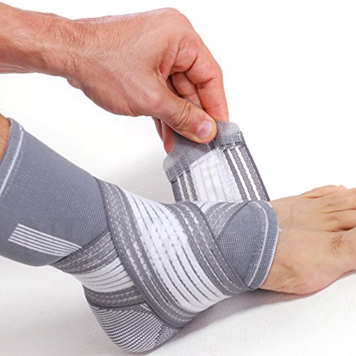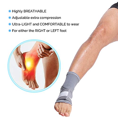 Tobillera ancha de sujeción (1 Unidad) - Tejido ligero, elástico y transpirable - Tira de compresión ajustable - Marca Neotech Care - Gris (Talla XL)