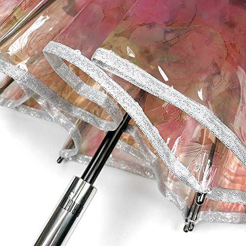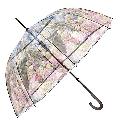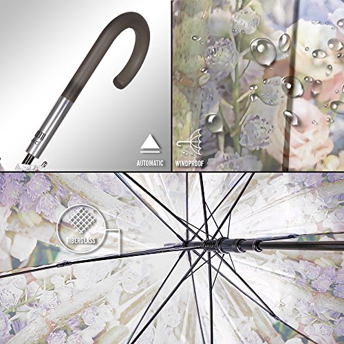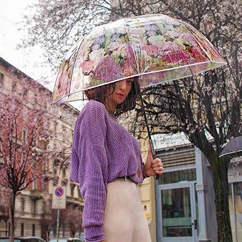 Paraguas Transparente Mujer - Paraguas Clásico de Burbuja Automatico - Estampado Flores - Fantasia a la Moda - Resistente Antiviento - 89 cm de diámetro - Perletti Chic - Rosa