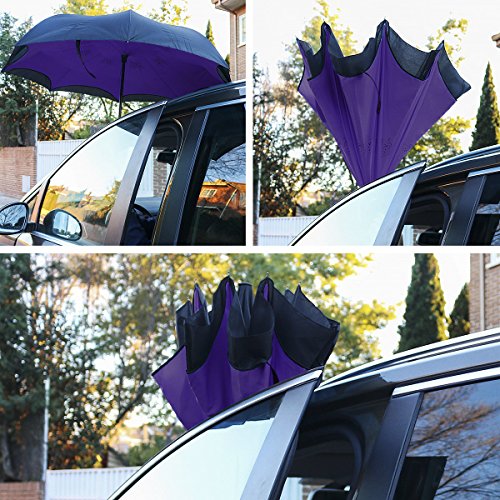 - PARAGUAS INVERTIDO DE DOBLE CAPA: SIEMPRE SECOS Y A CUBIERTO. Este original paraguas reversible nos permite permanecer cubiertos hasta el último momento, ya que al cerrarse y abrirse “al revés” necesita muy poco espacio para introducirlo en el coche o por la puerta. Además, acumula las gotas de lluvia en el interior del paraguas, manteniéndonos siempre secos. El paraguas se mantiene de pie por si mismo cuando está cerrado, lo que ayuda a un secado rápido y óptimo.