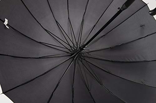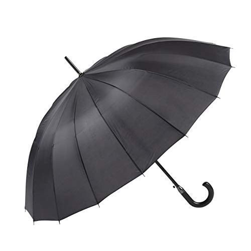 GOTTA Paraguas Largo y Grande de Hombre y Mujer, 16 Varillas. Antiviento, automático y con puño Curvo de plástico. Tejido Liso - Negro