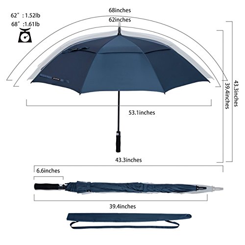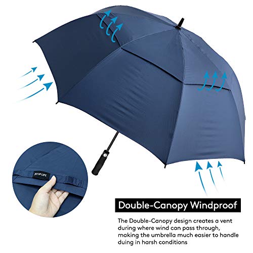 - COMPAÑERO SUPERIOR - Con un tamaño abierto muy grande, le protege de la lluvia pesada o del sol caliente. La tela de la pintura 190T hace el paraguas altamente resistente del agua y rápidamente seco, compañero perfecto para los golfistas, los profesionales del negocio o para la vida de cada día.