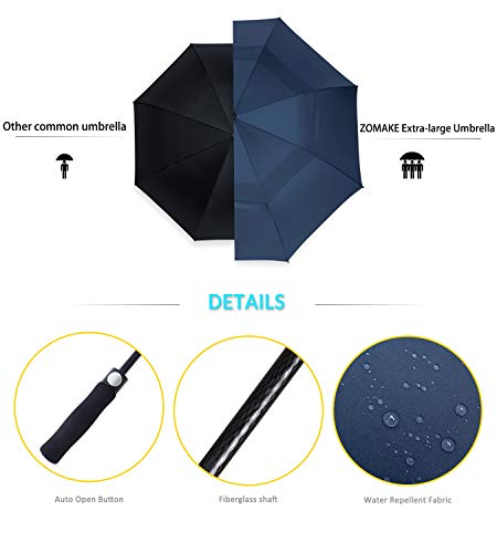 ZOMAKE Paraguas Grande Antiviento, Automático Paraguas de Golf con Doble Cubierta para Mujer Hombre(Azul)