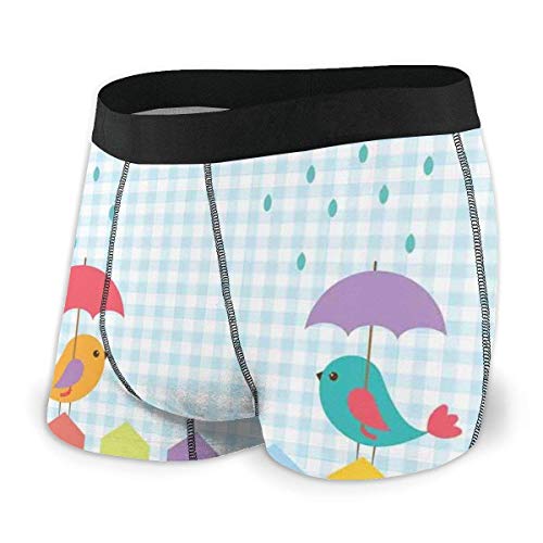Calzoncillos Boxer para Hombres, Divertidos pájaros Coloridos Dibujos Animados bajo Paraguas en la Cerca Nubes de Amor Diseño de Lluvia Tamaño de la casa L