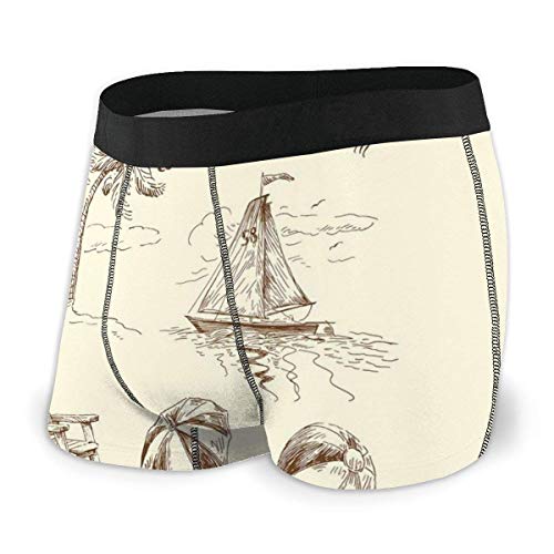 Web--ster Calzoncillos bóxer para Hombre, Monocromo Tropical Elements Tree Boat Paraguas Silla de Madera Patrón Sketch Design Size XL