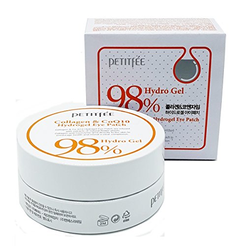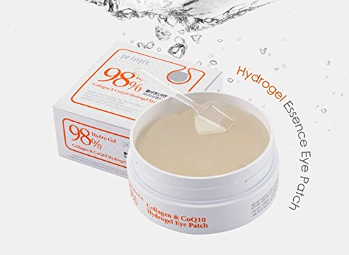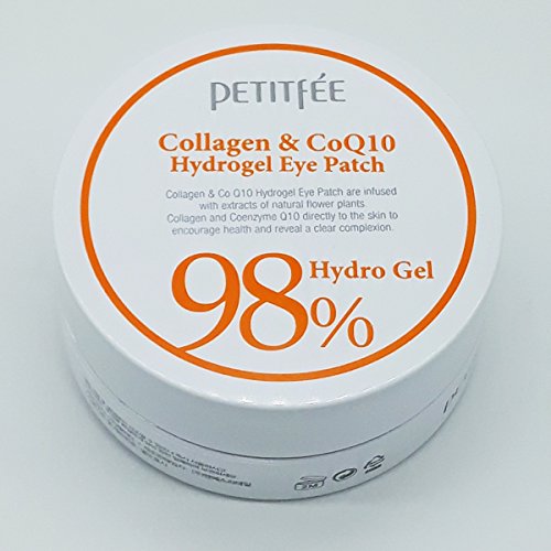 petitfée - 98% Colágeno & Coenzima Q10 Hydro Gel Ojos esencia parche para hombre y mujer - 60 x Piezas - Cuidado de la piel con Colágeno, Aloe Vera, Té Verde y Co Q10 - Juego de ojos arrugas y parches