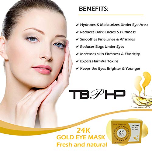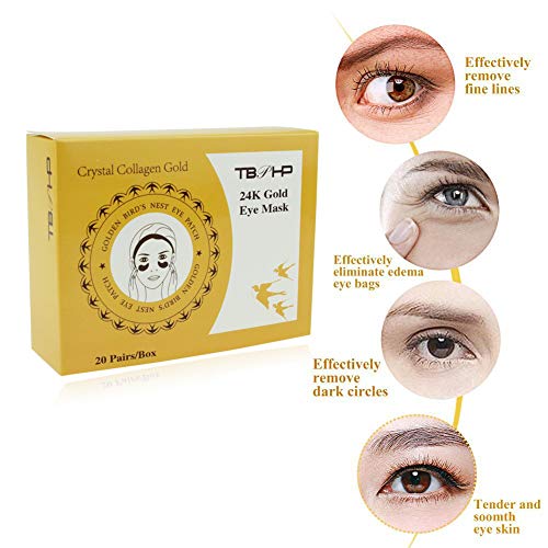 TBPHP Máscara de ojo de colágeno en polvo dorado (20 pares),24K Máscara para ojos de colágeno,Anti-envejecimiento, Máscaras Antiarrugas para Los Ojos,Reduce Las Ojeras, eliminar bolsas bajo los ojos