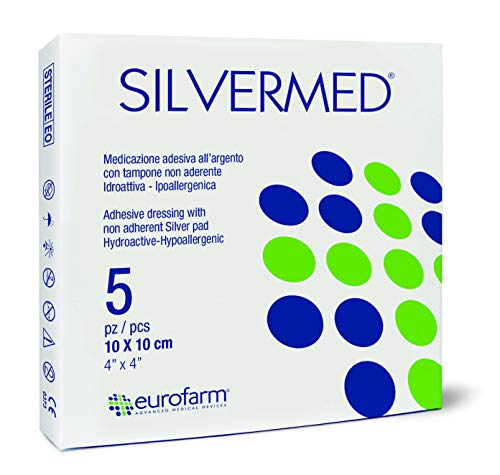 Silvermed (cm 10 x cm 10) Apósito de Plata Micronizada con Bordes Adhesivos,Ideal Para una Rápida Cicatrización. Paquete de 5 Unidades