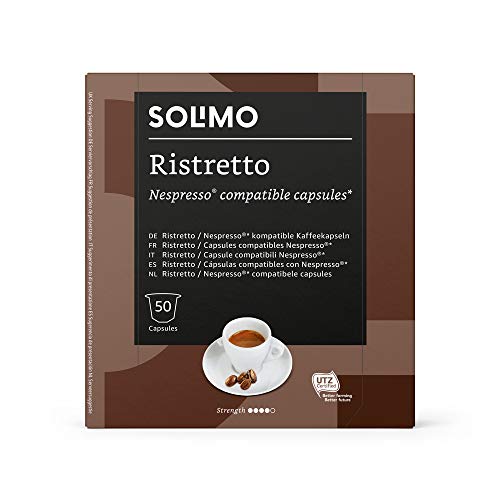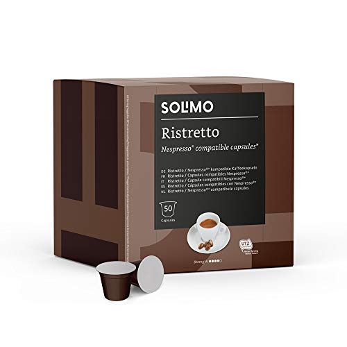 Marca Amazon - Solimo Cápsulas Ristretto, compatibles con Nespresso - café certificado UTZ, 100 cápsulas (2 x 50)