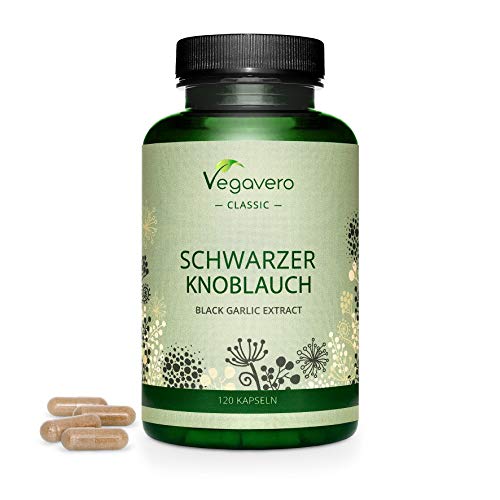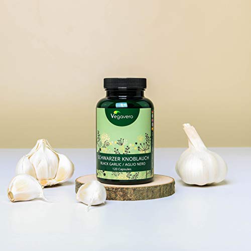 Ajo Negro Vegavero® | Alta dosis 6000 mg & 100% libre de aditivos | Tensión arterial + Colesterol + Antioxidante + Hipertensión | Testado en laboratorio | Extracto 10:1 | Vegano | 120 Cápsulas