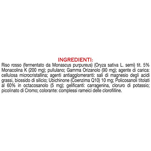 - LEVADURA ROJA DE ARROZ CONCENTRADA con 10 mg de Monacolina K, que contribuye a mantener niveles normales de colesterol sanguíneo, y 30 mg de Coenzima Q10.