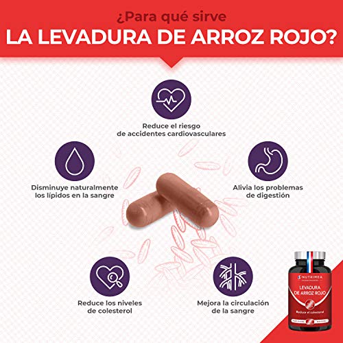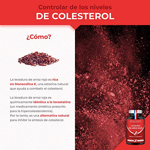 - ARROZ ROJO COLESTEROL : Altamente concentrada - La Levadura de Arroz Rojo + Coenzima Q10 de Nutrimea está estandarizada en 600 mg y 1,6% de monacolina K. Contribuye al mantenimiento normal del Colesterol LDL en la sangre.