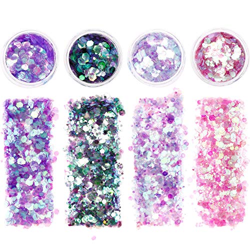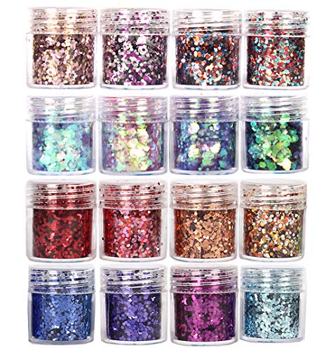 GCOA Purpurinas Polvo, Chunky Glitter Flakes paillette para rostro maquillaje de ojos cabello body art -16 Cajas