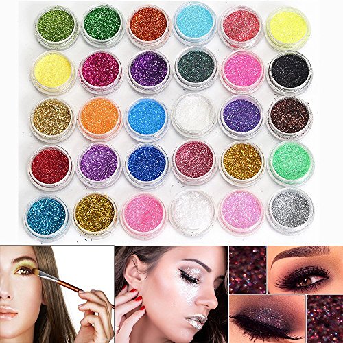 - 30 colores diferentes de sombras de ojos en polvo de purpurina.