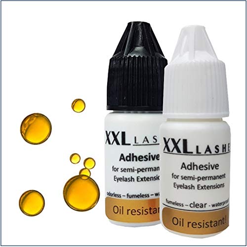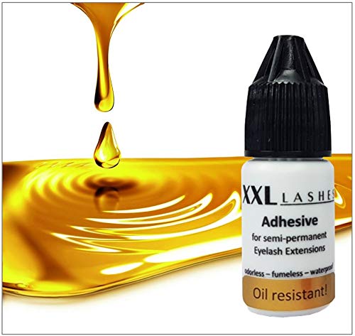 Adhesivo XXL Lashes sensitivo - primer pegamento para extensiones de pestañas sensible y resistente al aceite y agua, color negro, vegano, 5 ml (fecha de envasado en la base de la botella)