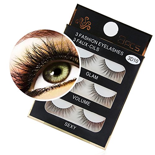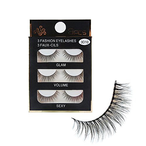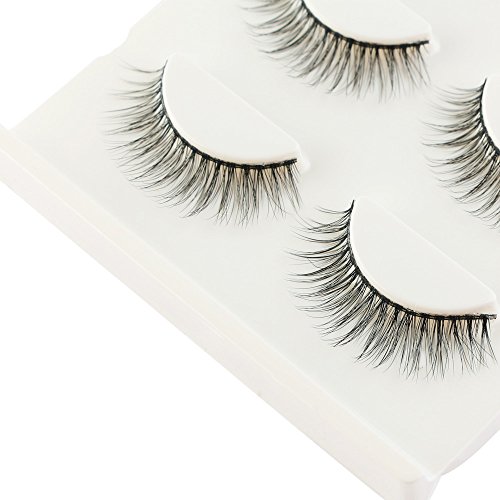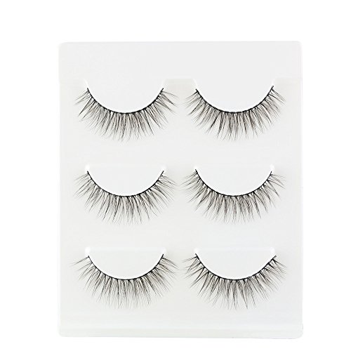 99AMZ 3D Pestañas postizas con Pegamento Naturales Reutilizables Maquillaje Extensiones de Pestañas Postizas Natural Curl Blando Suave Negras Pestañas Individuales 3 par Pestañas (Negro)