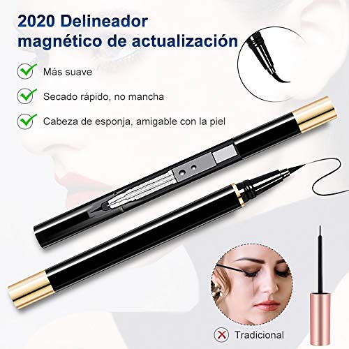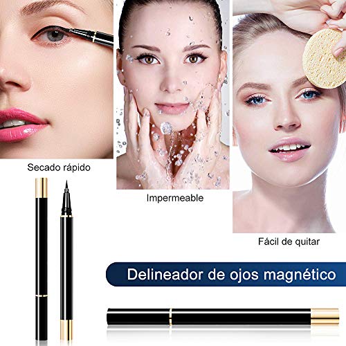 - ? 【Sin pegamento Sin imán】 - Ahora, ya no necesita preocuparse por la seguridad del pegamento y la inestabilidad del imán. El kit de pestañas mágicas más nuevo adopta la tecnología profesional de Ⅲ generación, libre de pegamento e imanes, inofensivo para la salud, más liviano y más pegajoso, puede permanecer en sus ojos todo el día. 【1.Presione el botón de punta antes de usar el delineador por primera vez, espere de 3 a 5 minutos hasta que la cabeza se vuelva negra 2.Use las pestañas antes de q