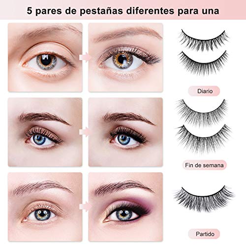 - ? 【5 pares y reutilizables】 - 5 longitudes y estilos diferentes de pestañas postizas diseñadas por California son adecuados para diferentes ocasiones. Los modelos naturales son adecuados para el trabajo y la escuela; las pestañas ordinarias pueden ser para el fin de semana y las pestañas densas son las mejores para la fiesta. Lo más importante es que las pestañas se pueden usar varias veces siempre que se almacenen correctamente.