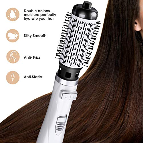 - ARRÉGLATE CON ESTILO: El moldeador a vapor viene con 4 accesorios: 2 cepillos de cerámica redondos, uno plano y un concentrador con boquilla para el secado de pelo. ¡Podrás tener un bello alisado u ondulado sin necesidad de ir a la peluquería!