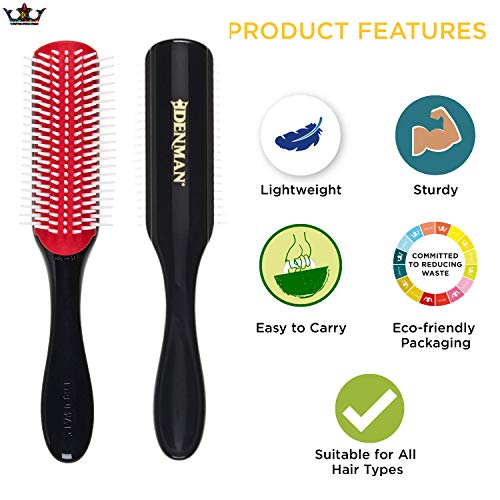 Denman D3 - Cepillo (7 filas), color negro y rojo