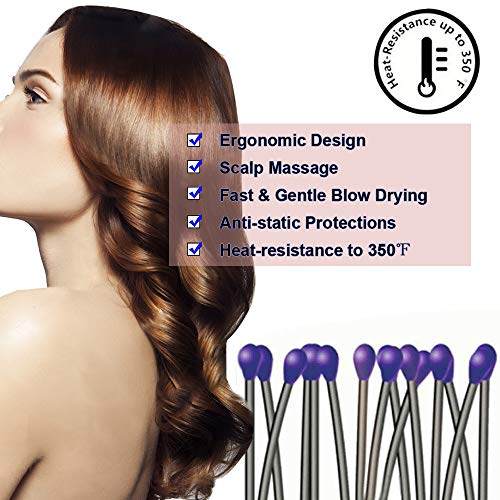- 【Cabeza de diente redondeada】 Las cerdas de cabeza esférica de 45 ° brindan un efecto de masaje en el cuero cabelludo, estimulan la circulación del cuero cabelludo, mejoran la textura del cabello y evitan daños en el cuero cabelludo.