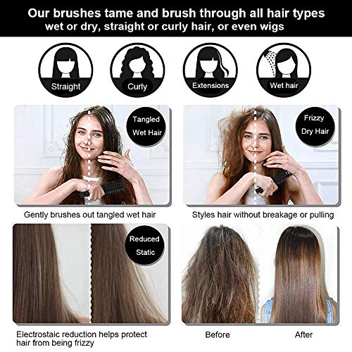 - ♔ Menos pérdida de cabello -- Un cepillo para desenredar el cabello puede ayudarle a minimizar la rotura y la pérdida de cabello y las puntas abiertas. No hay más arranques de pelo y verás cada vez menos pelo en el cepillo o en el suelo.