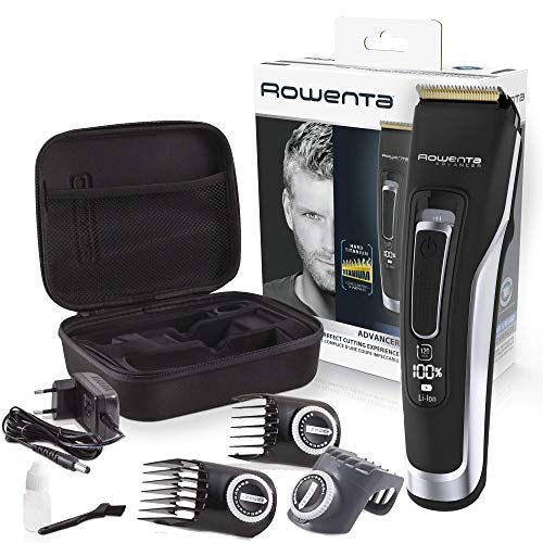 Rowenta Advancer TN5240 - Cortapelos hombre con cuchillas de acero inoxidable revestimiento titanio, autonomía 120 min, función Turbo y neceser, carga rápida, led indicador de batería