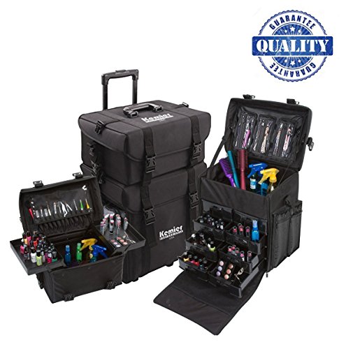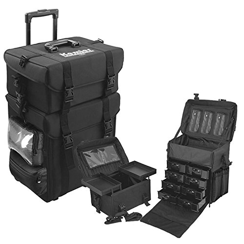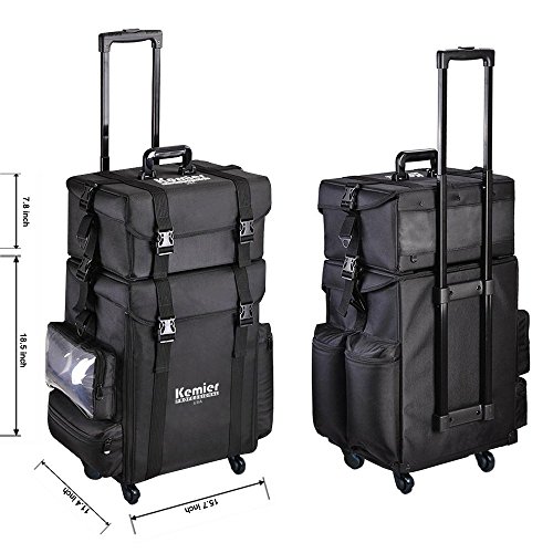 Estuche de Maquillaje Kemier Studio Ruedas Omni-direccionales 2 en 1 Profesional Suave, Removible, Maletín de Maquillaje de Tren para Arista, Organizador de Cosméticos con Cajones de Almacenamiento