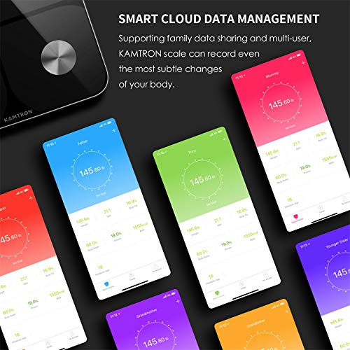 - ?? -[App mejorada y ilimitados usuarios] Basculas de baño grasa corporal tiene una plataforma de nube independiente , seguro y sin riesgo de pérdida de datos y fugas. Apoya un número ilimitado de usuarios,descarga gratis desde Apple App/App "Feelfit" en el Google Play, usted y su familia pueden compartir una báscula."Feelfit"APP está sincronizado con APPLE HEALTH,GOOGLE FIT y APP FITBIT