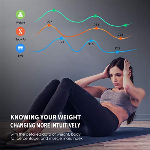 Báscula Grasa Corporal Báscula de Baño- Báscula Inteligente Bluetooth, Medición de Alta Precisión el Peso Corporal, Porcentaje de Grasa Crporal, Masa Muscular, IMC, Grasa Visceral