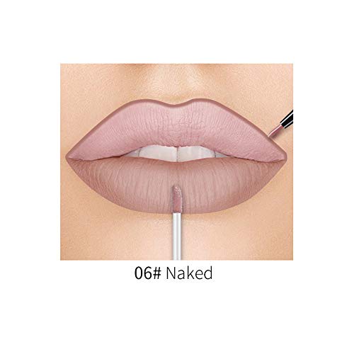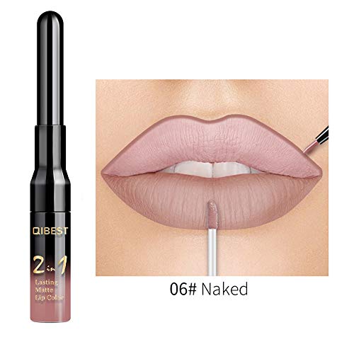 JUTOO Brillo labial dos en uno + delineador de labiosQIBEST Perfilador de labios duradero de doble punta Lápiz delineador de labios a prueba de agua Brillo de labios