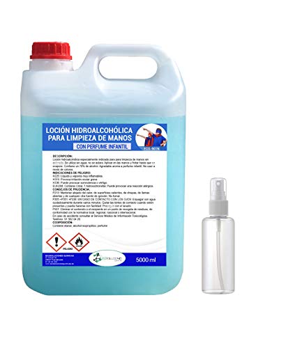 Loción Hidro-alcohólica para manos perfumada | COLONIA INFANTIL/MELÓN/COCO | ECO901 | 5 litros | Fabricantes españoles | INCLUYE PULVERIZADOR 75 ML