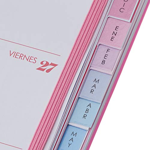 - Tapa dura con cantos redondos de color iridiscente rosa