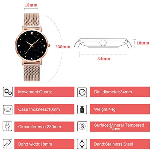 - ❤ RELOJ ELEGANTE Y DE LUJO PARA MUJERES: el clásico diseño de esfera estrellada es muy elegante y romántico. Este reloj es ideal para el uso diario, convirtiéndote en la estrella brillante en todas las ocasiones; Regalo ideal para sus seres queridos para cualquier ocasión como Navidad, Acción de Gracias, Cumpleaños, Aniversarios, Día de la Madre, Día de San Valentín, etc.