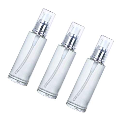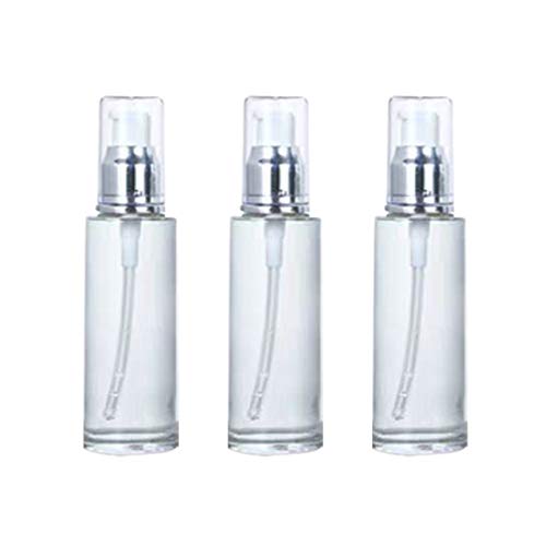 Hemoton 3 Piezas Botella de Bomba de Vidrio Mini Vacía Botella de Perfume de Aceite Esencial Dispensador de Aceite Recargable Botellas para Viajes a Domicilio 60 Ml (Plata)
