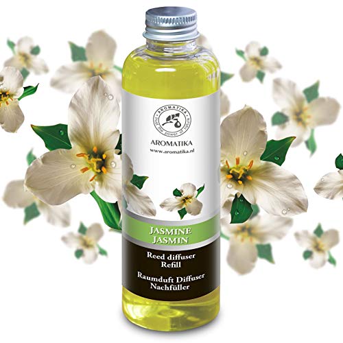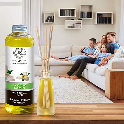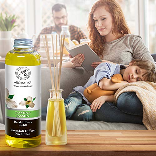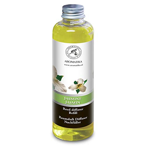 Recambio de difusor Jazmín 200ml - Aceite Esencial Puro & Natural Jazmín - Aroma de Intensas y Duraderas - 0% Alcohol - para Aromatizar el Aire en Cuartos - Baños - Hogares - Difusor Perfume