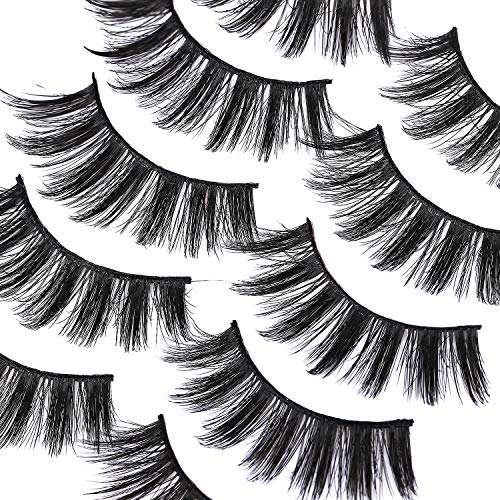 Pestañas Postizas de Pelo Artificial 3D/6D Mixtas 7 Pares Multipack, Tiras Completas, Natural Pestañas Falsa Largas Gruesas Maquillaje de Ojos para Fiesta de Boda