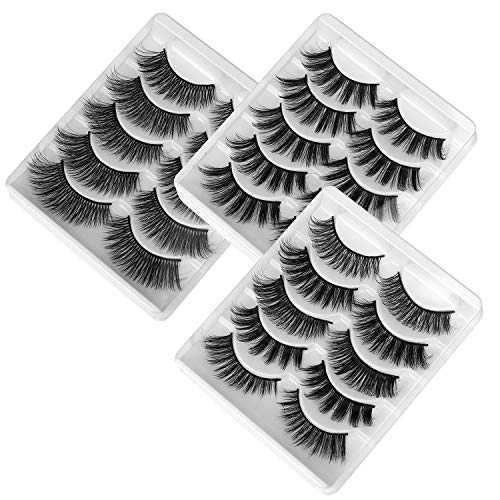 Pestañas Postizas de Pelo Artificial 3D Mixtas 15 Pares Multipack, Tiras Completas, Natural Pestañas Falsa Largas Gruesas Maquillaje de Ojos para Fiesta de Boda, 5 Estilos