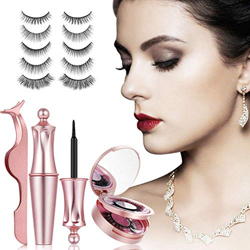 Pestañas Magneticas 5 Pares con 2 Delineador y Pinzas, 3D Pestañas Postizas Magnéticas Naturales Impermeable con 5 Imanes Suave Cuántico, Diferentes Estilos Reutilizables, No se Necesita Pegamento