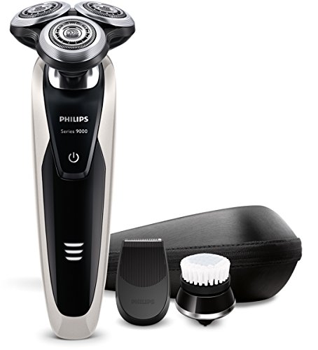 Philips Serie 9000 S9090/43 Máquina de afeitar, cabezales de 8 direcciones, uso en seco/húmedo, 40 min de batería, recortador de precisión, cepillo limpiador facial y funda de viaje, perla metálico
