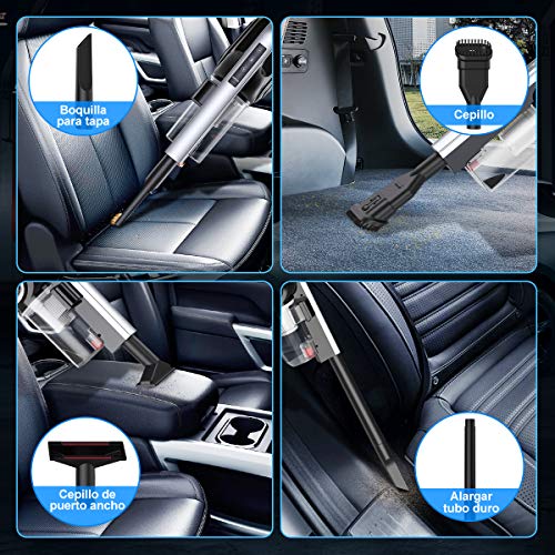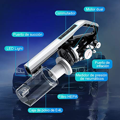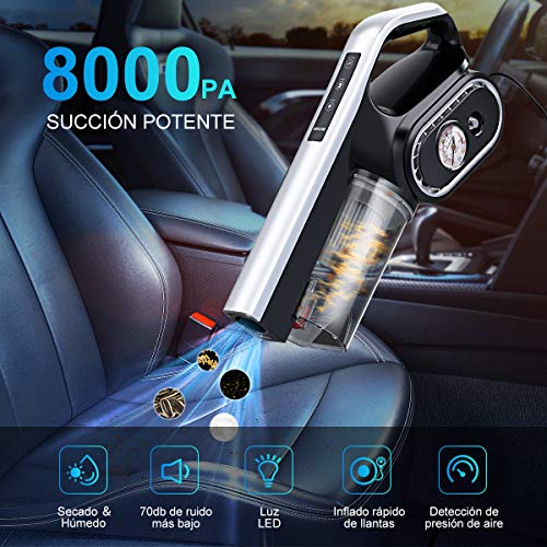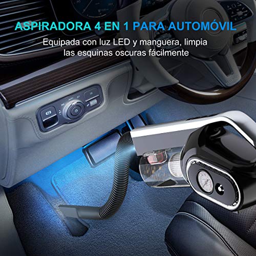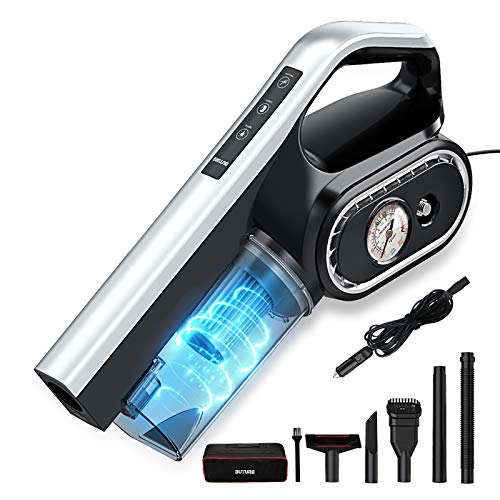 BuTure Aspiradora de Mano, 4 en 1 Multifunción Aspirador de Coche, Compresor Aire Portátil Inflador de Neumáticos 8000 Pa y Filtro Hepa Mejorado para el Automóvil