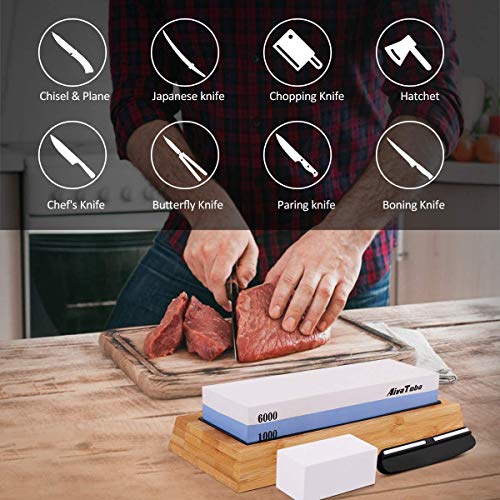 - ?【Uso multipropósito】Nuestra piedra para afilar cuchillos de grado profesional es altamente duradera. Este afilador de piedra de afilar puede afilar cualquier cuchilla, juego de cuchillos de cocina, cuchillo de carne, cuchillo de pelar, , cuchillo de carnicero, cuchillo de barbacoa, cuchillo de caza, cincel, navaja de afeitar, ¡incluso puede afilar un hacha!