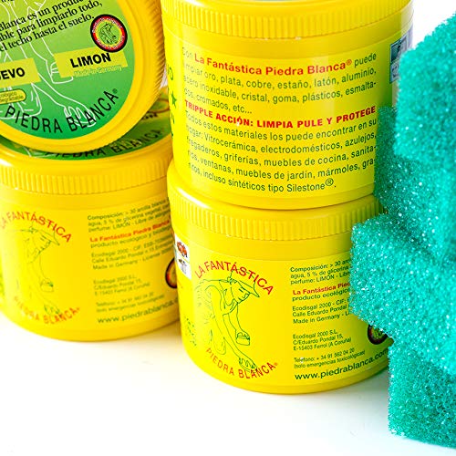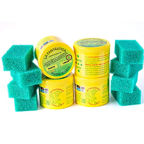 Fantástica Piedra Blanca 4 Botes Original (Arcilla Blanca) 900Gr + 8 Esponjas de Regalo