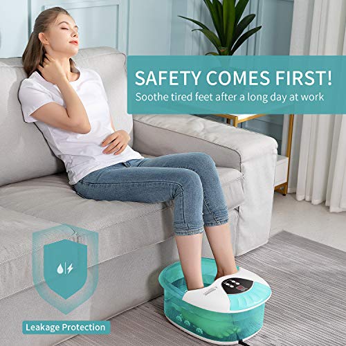 Bañera Para Pies Masajeador de Pies con Calefacción y Vibración, Hidromasaje Pies con 16 Masajea Rodillo, Masaje Burbujas, Spa para Pies Aliviar los Dolores de los Pies