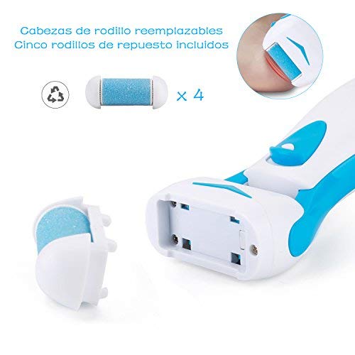 Pedicura Eléctrico Bedee Pies Cuidado Quita Callos Electronico, Quitar la Piel Muerta, Eliminar las Durezas y las Callosidades, Masajeador de Pies Recargables,Cabezal Impermeable[5 rodillos]