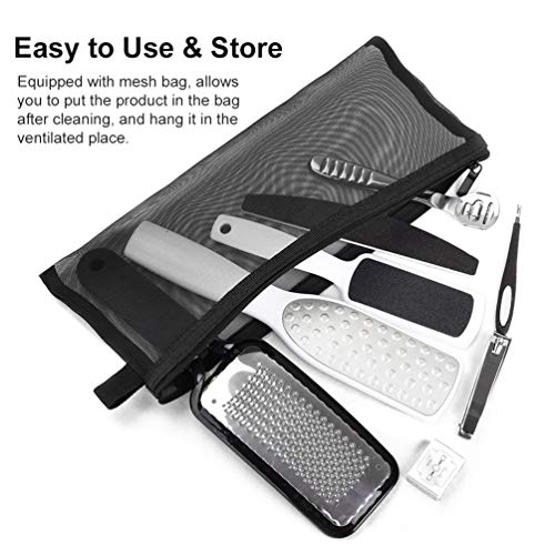 - ?Almacenamiento fácil: Equipado con una bolsa de almacenamiento de malla ventilada, le permite guardar las herramientas de pedicura inmediatamente después de la limpieza. Colóquelo en un lugar ventilado, de tamaño portátil para el hogar o para viajar.