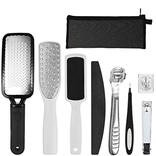 Pretty See Lima de Pies,8 en 1 Kit de herramientas de pedicura profesional, Conjunto de pie de acero inoxidable Escofina de pie Remover la piel muerta para el cuidado de los pies en el hogar