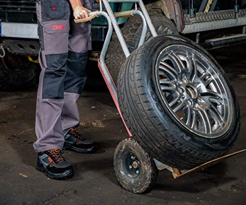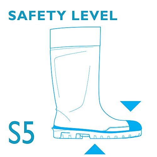 - Esta bota con puntera y suela de acero garantiza una excelente protección contra objetos pesados y caídos, así como contra la penetración de clavos u otros objetos puntiagudos.